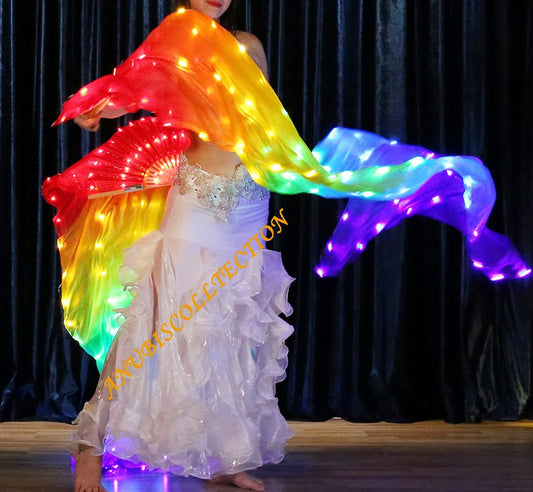Abanicos es buen elemento para bailar, tendremos de pluma, organza o seda y con luces de led.