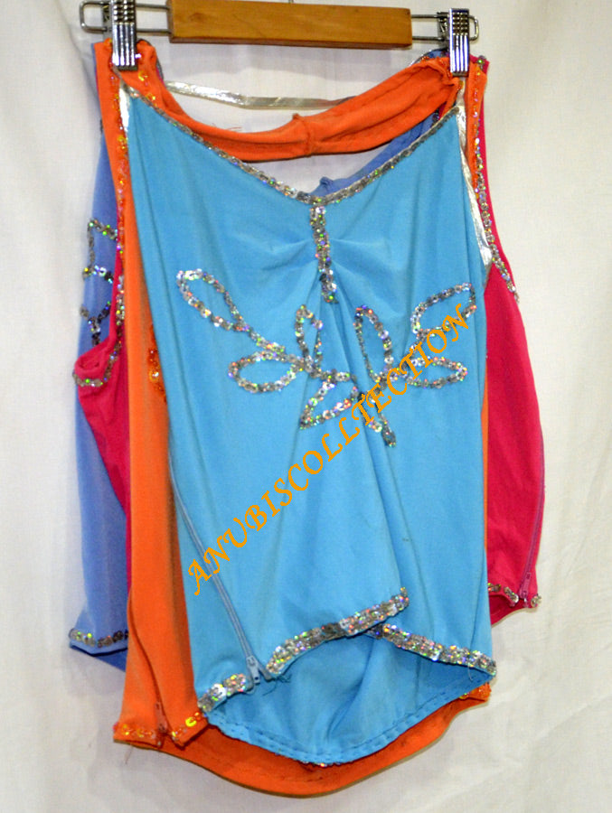 4 tops de licra bordados, de talla única, tienen cremallera para ajustar. pueden servir tallas: S, M y L